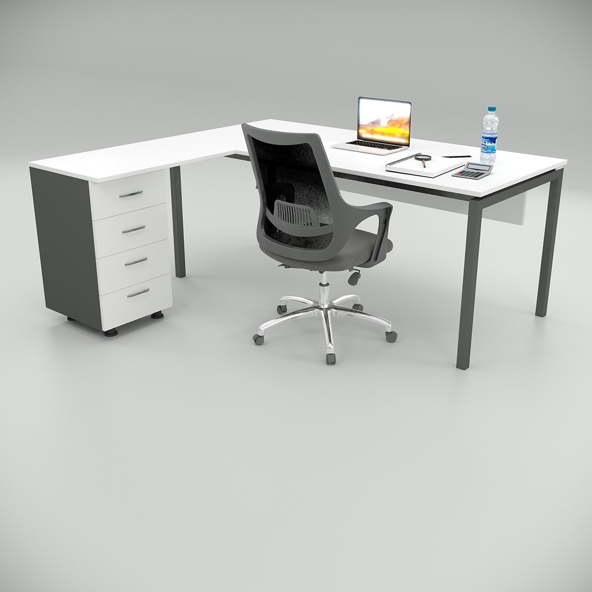 Gornji deo je u beloj boji, prednja zavesa je bela, a metalna noga je u antracit boji profila 40×40.