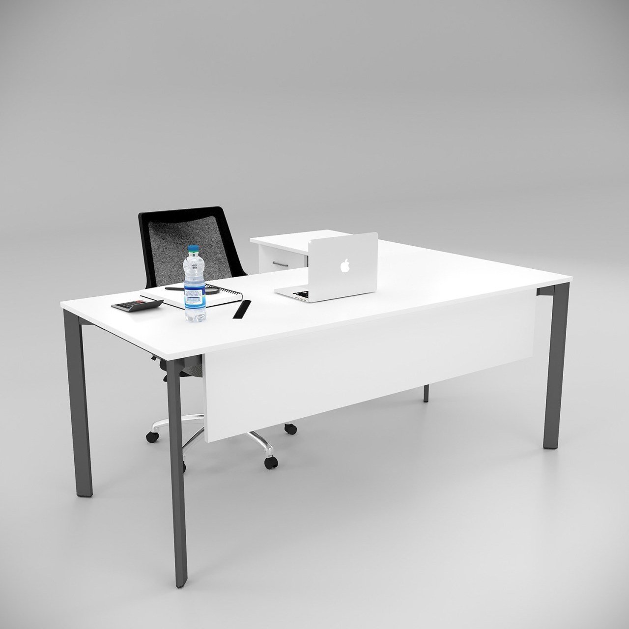 Цаселла Оффице Фурнитуре нуди изванредне производе који комбинују модеран дизајн са функционалношћу, чинећи ваше радне просторе ефикасним и естетским. Са иновативним дизајном, квалитетним материјалима и ергономским решењима, Цаселла чини ваше канцеларије не само радним местом, већ и центром ефикасности и удобности. Сто и предњи праг су бели. Металне ноге су приказане у антрацитним бојама...